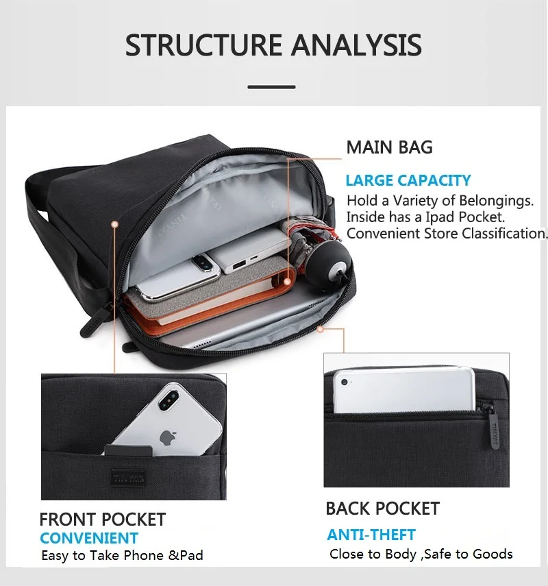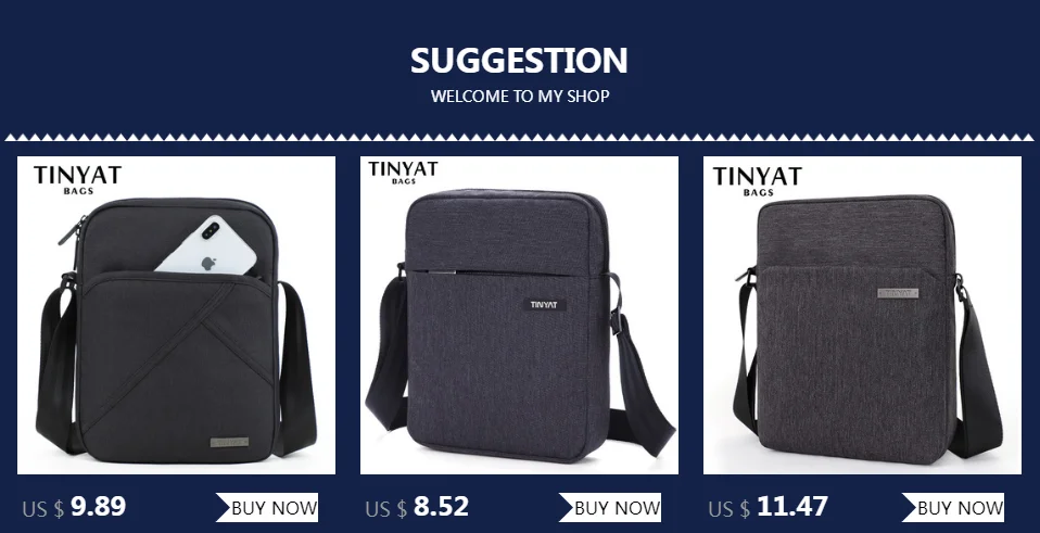 TINYAT Men's Bag Light Canvas Shoulder Bag For 7.9' Ipad Casual Crossbody Bag Waterproof Business Shoulder bag for men 0.13kg